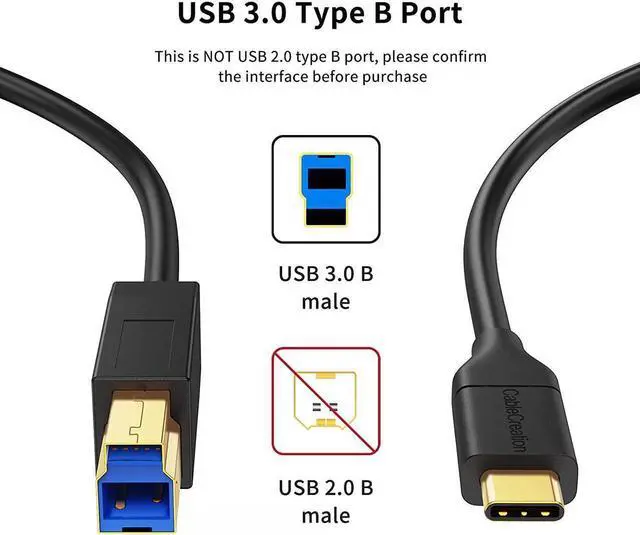 Tips for Usage (1) This cable is NOT backward compatible with USB 2.0 Type B, because USB 3.0 Type B looks totally different with USB 2.0 Type B connector. (2) If your target device is printer, scanner or MIDI, please firstly go to their official website to download corresponding driver before using it.
