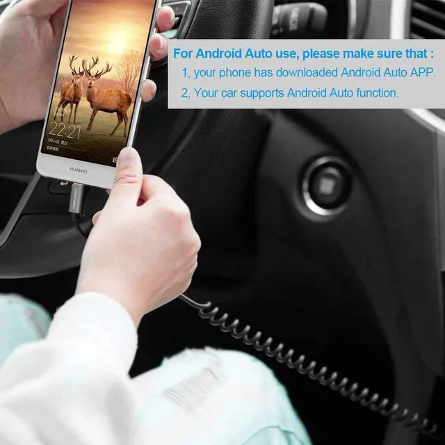 Elastic Coiled Design: Coiled usb c cable provides the perfect length for connecting a smartphone to a car charger without having a tangled cable mess, stretches easily from around 0.6 foot to 4 feet or more after use. normal length at 0.17 m ( 0.5 foot), can be stretched to 1.2 m (4 feet) and bounce back to normal length well. For Android Auto use, please make sure that 1, your phone support Android 5.0 or above and has downloaded Android Auto App. 2, Your car supports Android Auto function.