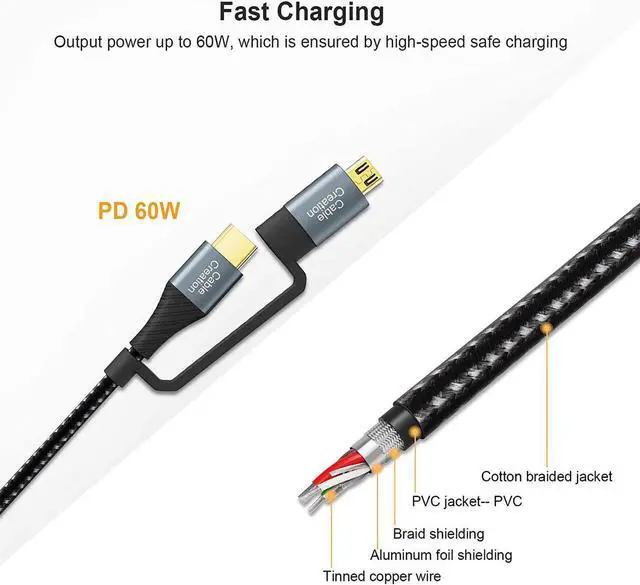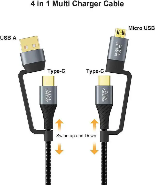 Multi-Functional - Includes four connection methods, Type C to Type C / USB-C to Micro USB / USB A to USB-C / USB A to Micro USB. the four functions are integrated together to be compatible with more android devices and Type-C devices.