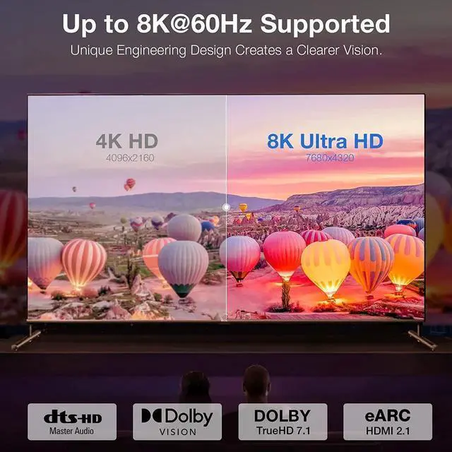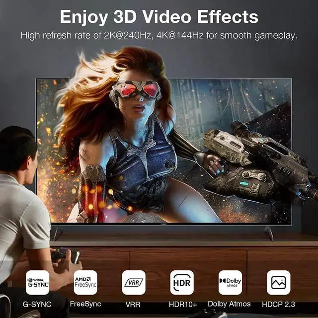 Perfect Audio fidelity The sound output performance of HDMI 2.1 has been greatly improved, truly supports HD Dolby 7.1 and Dolby Atmos, Dynamic HDR, BT. 2020, ALLM, DSC 1.2 a, VRR, HFR, QMS, QFT, eARC, and HDCP 2.3 compliant for viewing content protected video, enhances every moment values for depth, detail, brightness.