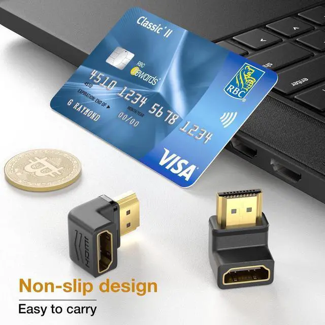 Unique and Reliable Design Superior construction of right angle adapters combines gold-plated connectors with an non-slip surface to provide reliable signal transmission and easy installation. Convenient and cost-effective 2-Pack (90 degree and 90 degree) HDMI adapters provide spare or replaceable units. One is fixed on the device to protect the original interface, and you can carry the other around.