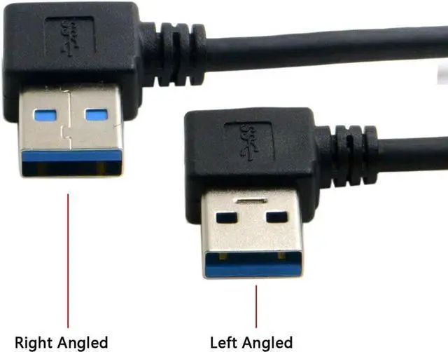 USB 3.0 Type A Male 90 Degree Left Angled to Right Angled Extension Cable Straight Connection Connector 1: USB 3.0 Type A Male 90 Degree Left Angled Connector2: USB 3.0 Type A Male 90 Degree Left Angled Straight Wire Connection