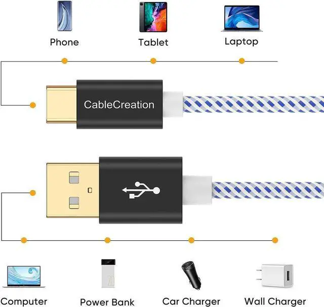 Durable ConstructionDynamic and Fashionable two-tone black and white Braided, Reversible usb-c connector, Aluminum alloy case, high quality materials makes it more durable.