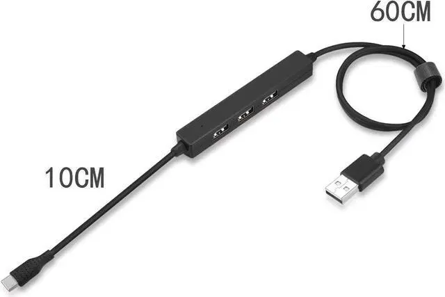 USB 2.0 Male to 3 Ports USB 2.0 HUB Female & Type-C USB-C Male Power Data Cable