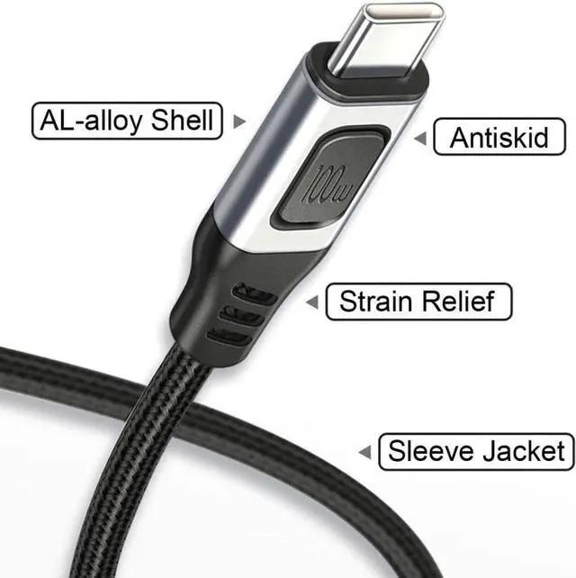 Build-in Emarker chipset, Support Scalable DC20v 5A (100W) power charging and usb 2.0 480Mbps data.