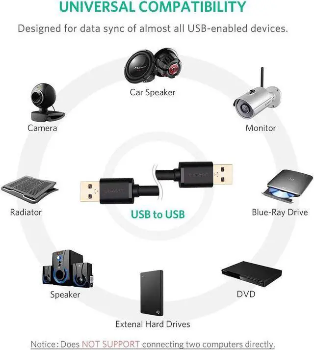 USB A to A Male Cable, USB 3.0 Male to USB 3.0 Male Cable USB to USB Extension Cord for External Hard Drives, Modems, Printers, Cameras, Computer, Laptop & More ( 1.65 Feets, 0.5 m)