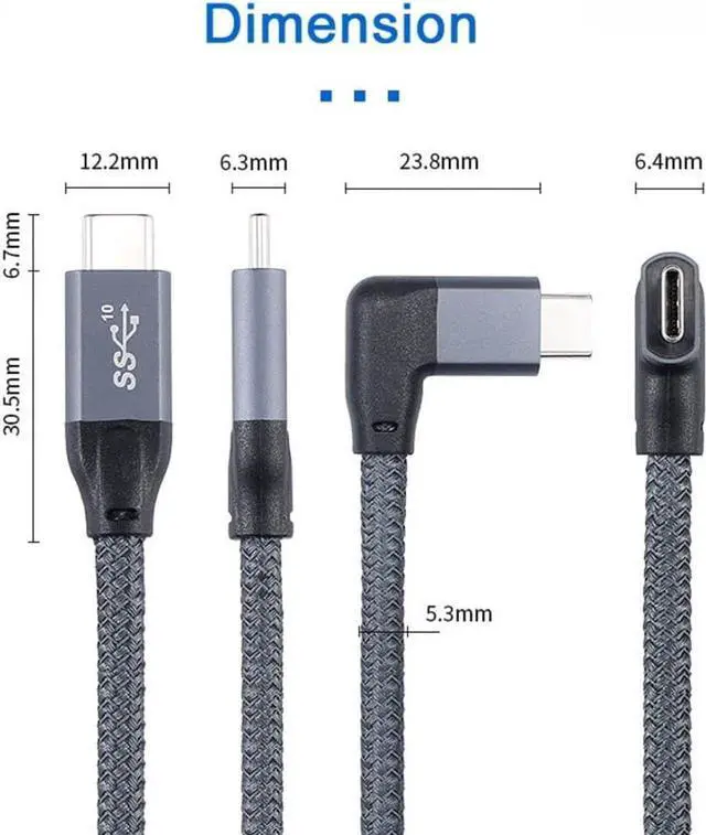 90 Degree Right Angled Type-C USB-C Male to Male USB 3.1 10Gbps 100W Data Cable for Laptop & Phone