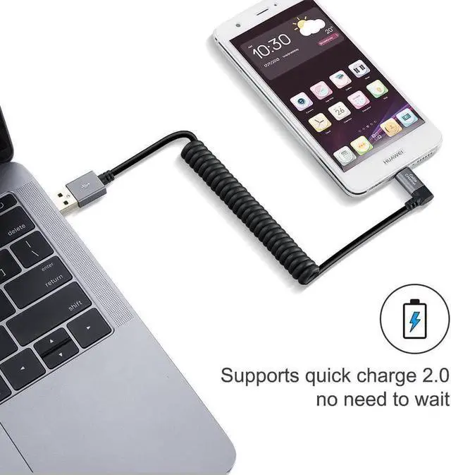 Angle & Coiled Cable: Provides the perfect length for connecting a smartphone to a car charger without having a tangled cable mess. Normal length at 0.17 m ( 0.5 foot), can be stretche to 1.2 m (4 feet) and bounce back to normal length well.