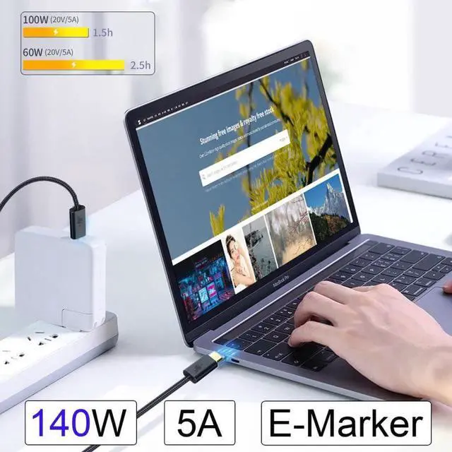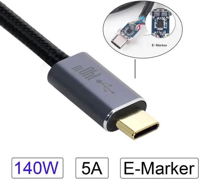 Build-in Emarker chipset, Support Scalable 140W/100W power charging and usb 2.0 480Mbps data.