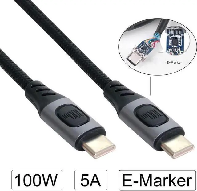 Build-in Emarker chipset, Support Scalable DC20v 5A (100W) power charging and usb 2.0 480Mbps data.