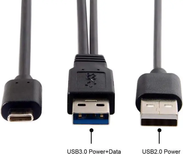 There are times you may have an external device, such as a portable 2.5 hard drive, and a standard USB cable is not able to transfer enough power to operate the device. Type-C USB-C to USB 3.0 Male & USB 2.0 Dual Power Data Y Cable 60cm