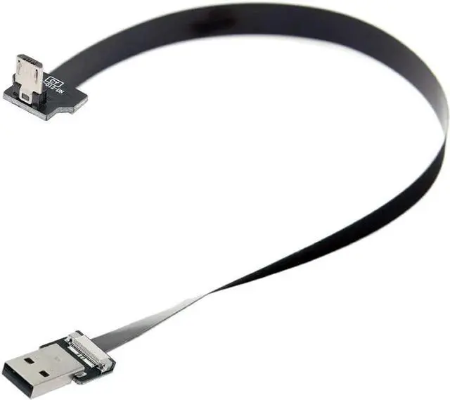 Type-A USB 2.0 Male to Micro USB 5Pin Male Downward Angled 90 Degree Data Flat Slim FPC Cable 20CM for FPV & Disk & Phone