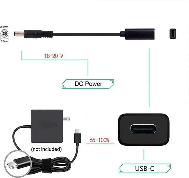 Use it with the 65W-100W Type-C Charger to conveniently charge your Laptop with DC 18v-20v port from a wall outlet.