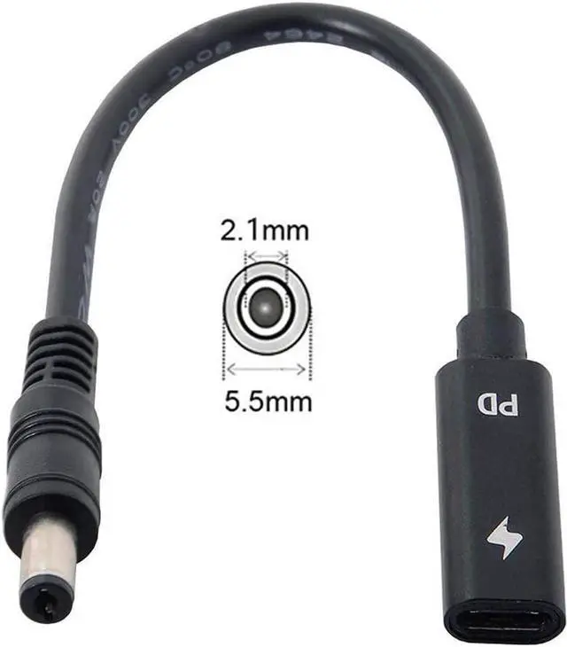 0.2 m Type C USB-C Female Input to DC 5.5 * 2.1 mm Power Charge Cable