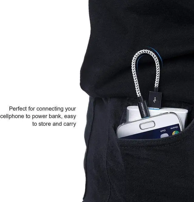 Short Micro USB Cable: Sturdy cable with Aluminum case and BLACK+WHITE color cotton jacket, Triple shielded wire (Twisted Pair shielded by Alum-Mylar, plus 100% Tin-copper braiding shielding) ensures no data loss during transmission. 0.5F t design, perfect Length for TV Stick or Power Bank.