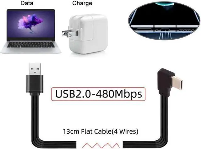 USB 2.0 Type-A Male to USB-C Type-C Male Flat Slim FPC 90 Degree Angled Data Cable for FPV & Disk & Phone 13cm.