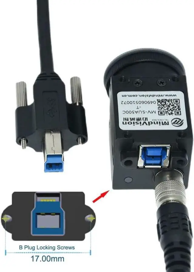 Dual Thumbscrews USB 3.0 Back Panel Mount B Male to Female B Type Extension Cable 0.5 m.