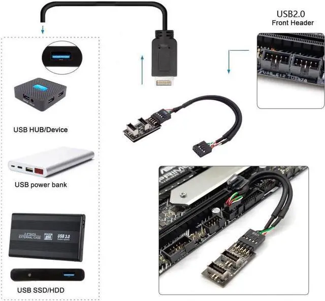 Converter plug-in for the mainboard, Fits into any USB 2.0 header.