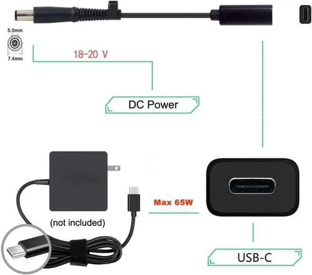 Use it with the 65W Type-C Charger to conveniently charge your Laptop with DC 18v-20v port from a wall outlet.