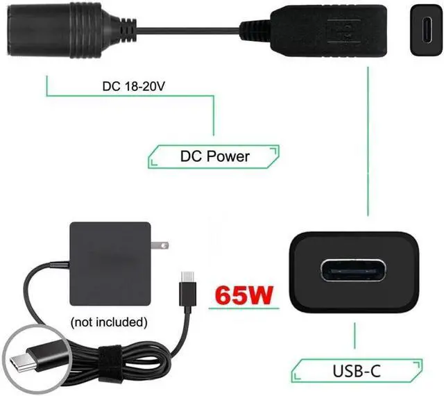 Use it with the 65W Type-C Charger to conveniently charge Cigarette Lighter Plug Receptacle with DC 18v-20v port.