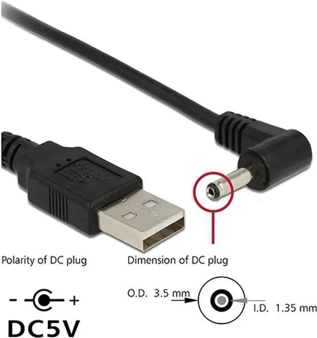 USB 2.0 Male to Right Angled 90 Degree 3.5 mm 1.35 mm DC power Plug Barrel 5v Cable