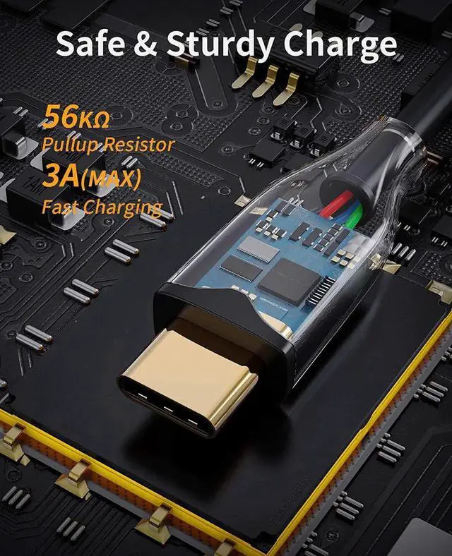 56K Pull-up Resistor for Safe ChargeCableCreation USB C to USB A Cable is built in with a 56k ohm resistor, which esures a safe charging and protect your devices and charging adapters from damage of overcurrent.