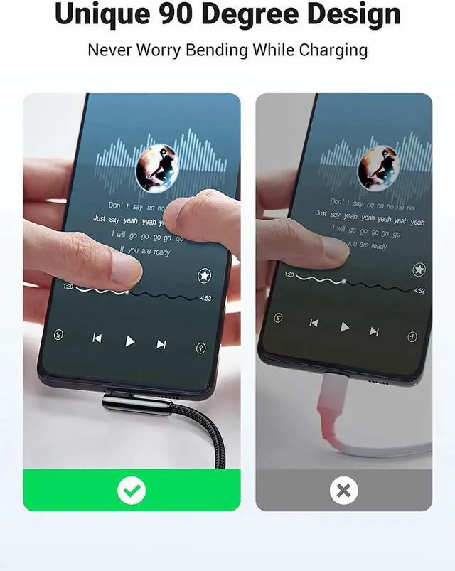 Unique Design: USB-C to USB-A cable with an innovative 90 degrees L design, is much more convenient and more comfortable for playing games, watching videos, reading e-books when you lie on the couch or bed while charging.