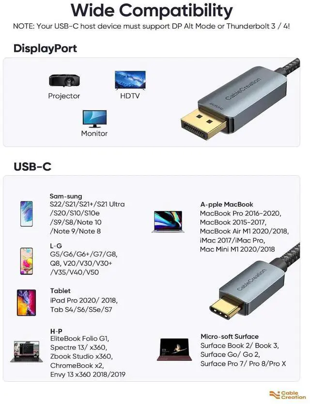 Wide Compatibility: This USB4 Cable is Compatible with devices with Thunderbolt 4/ Thunderbolt 3/ USB-C port Displays, like Mac-book Pro, i-Mac, Alienware, Google Pixel, ChromeBook, XPS, H-P,, Sam-sung Galaxy S10, thunderbolt hub, docking stations, hard drives, external SSD, peripherals, and eGPU, etc. Meanwhile, backward is compatible with Thunderbolt 3, Thunderbolt 4, USB 3.2 / 3.1 / 3.0, USB-C Gen 1/2, USB 2.0