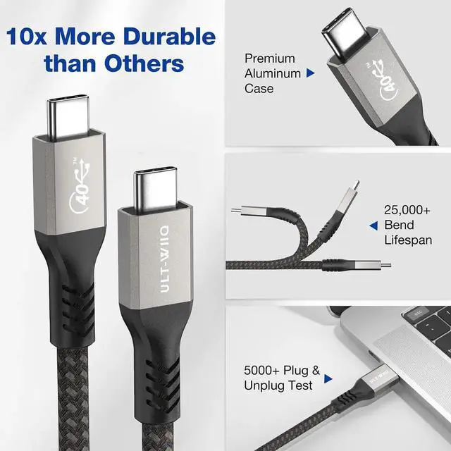 40Gbps Fast Transmission The ULT-WIIQ USB4 cable has passed all USB4 tests and obtained certificate No. 5670. It is fully compliant with the USB4 specification and supports ultra-data transfer speeds of up to 40Gbps. It can copy 14 hours of high-definition video or 25, 000 photos within 1 minute, transmission speed is 4 times faster than USB 3.1.