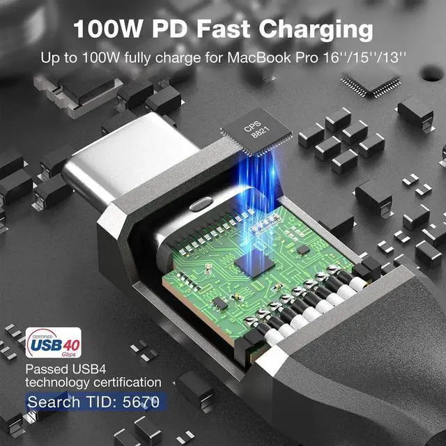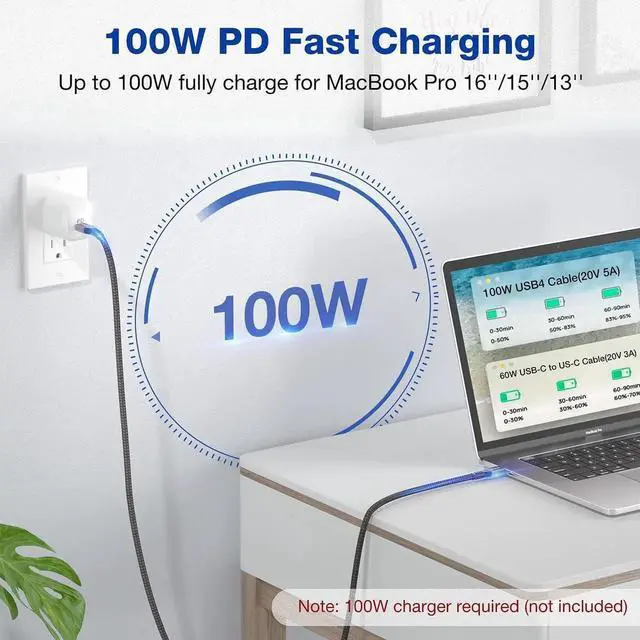 100W Fast Charging The USB-IF Certified USB4 Cable can deliver power in both directions, up to 100W(20V/5A) of charging. With this USB4, allows you to keep powering your Thunderbolt 3 device without the need for an additional power supply. If you're in a hurry, this cable is the best charging option. No need any drivers or software, just plug and play.