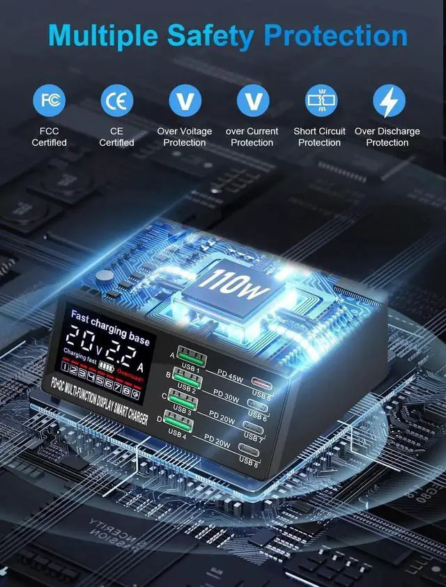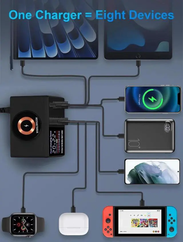 RELIABLE USB CHARGING STATION --- The charging station for multiple devices delivers reliable power management. This multiple USB charger station ensures efficient charging for all your gadgets, Making it a top choice for a Multi USB Charging Station.