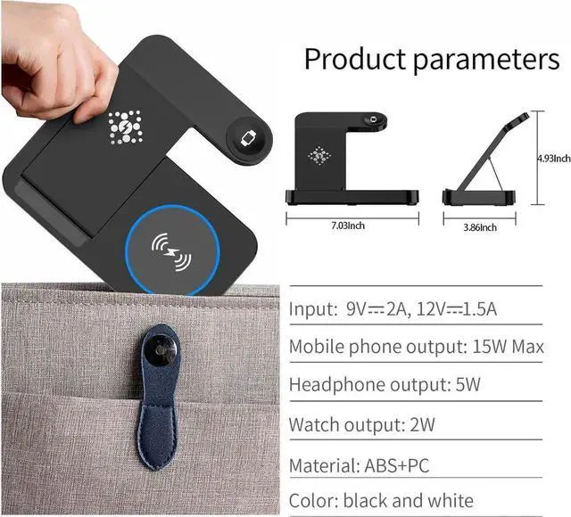 Portable & Foldable Travel Charger Stand --- The Charging Station for Sumsung can be folded and put in a bag Or Suitcase. Our Wireless Charging Pad Is Not Only Suitable For Your Home, Office, If You Are Traveling Or On A Business Trip, Bring This Three-in-one Charger, Which Can Charge Multiple Devices At Once. Also, Versatile As A Cell Phone Stand With Angle Adjustment. It's As A Charging Pad, Just Leave The Phone Flat To Keep It Charging.
