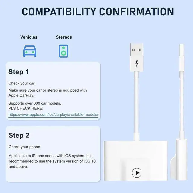 READ BEFORE BUYING: First, this product itself no provide carplay function, please make sure that your car has built-in wired Apple CarPlay. Secondly, this CarPlay dongle supports firmware updating, if it does not fully work or not working on your car, please let us know your issue first, and we will help you update the firmware and to fix the problem soon as possible.