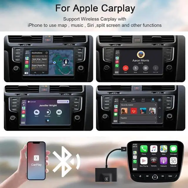 CarPlay Wireless Adapter: No need for wired connections anymore, now it is so easy to convert your wired CarPlay to wireless with our CarPlay wireless dongle! You can continue to use the full CarPlay function and keep the original car operation, such as navigation, music playing, Siri assistant, phone calls, etc.