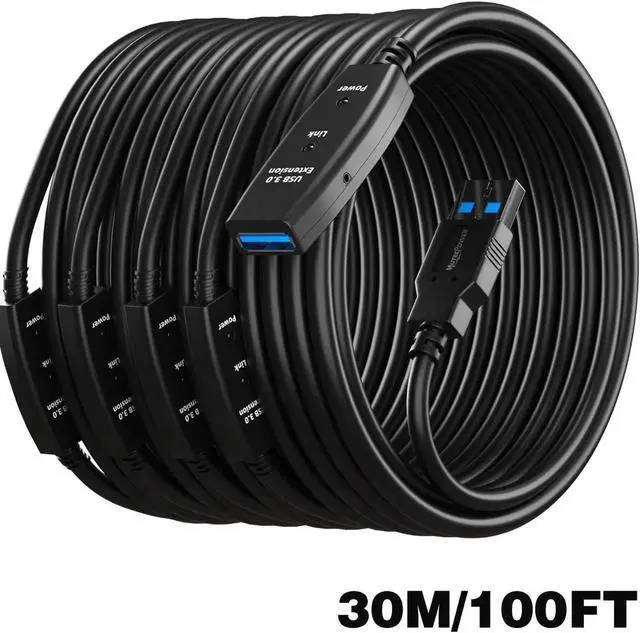 USB 3.0 Active Extension Cable (100 Feet) A-Male to A-Female USB Repeater with Signal Booster for Oculus Rift, Quest Link, Xbox 360 Kinect, Playstation, Printer, Webcam