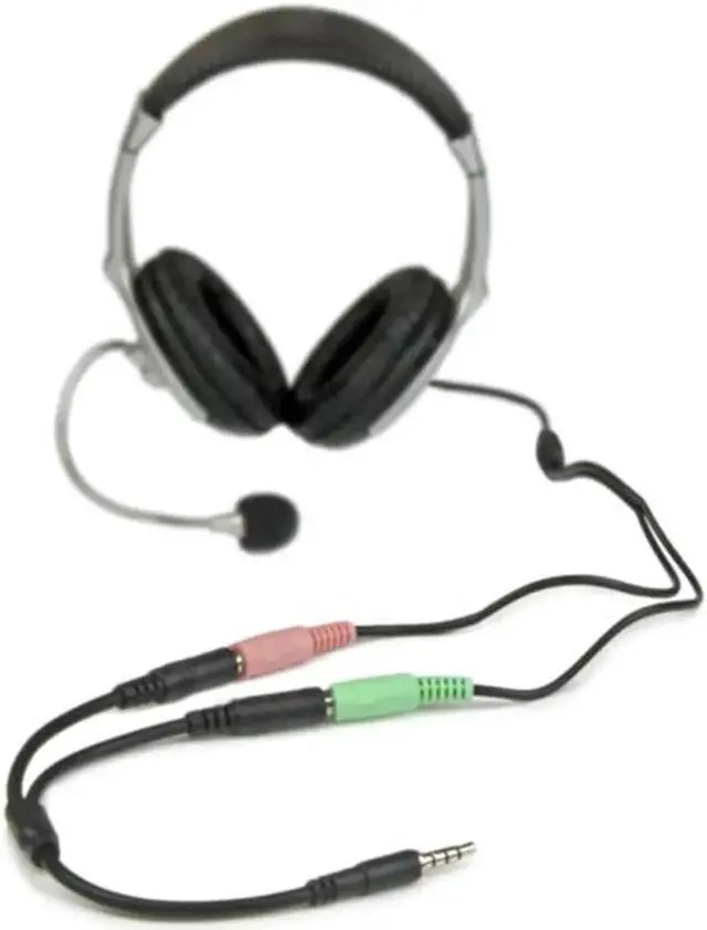 Turns a 3.5mm combo headphone/microphone port into two distinct ports - one 3.5mm headphone jack and one 3.5mm microphone port