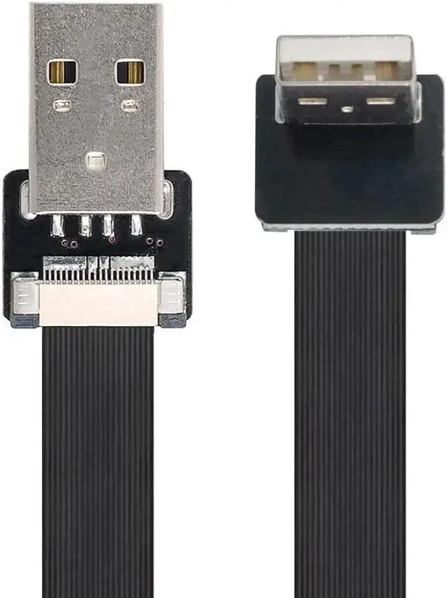 USB 2.0 Type-A Male to USB 2.0 Type-A Male Data Flat Slim FPC Cable 90 Degree Up Angled for FPV & Disk & Scanner & Printer 100CM