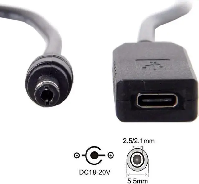 input: Type-C Female, 65W Type-C Charger ; output:DC 5.5 2.5mm & 2.1mm male, DC 18v-20v(not support 5v)