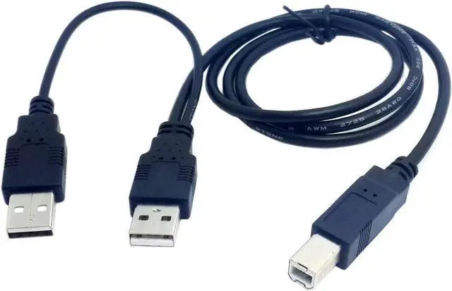 USB 2.0 A Type Male Dual Port to Standard B Male Y Cable 80cm