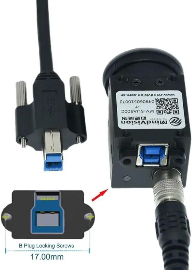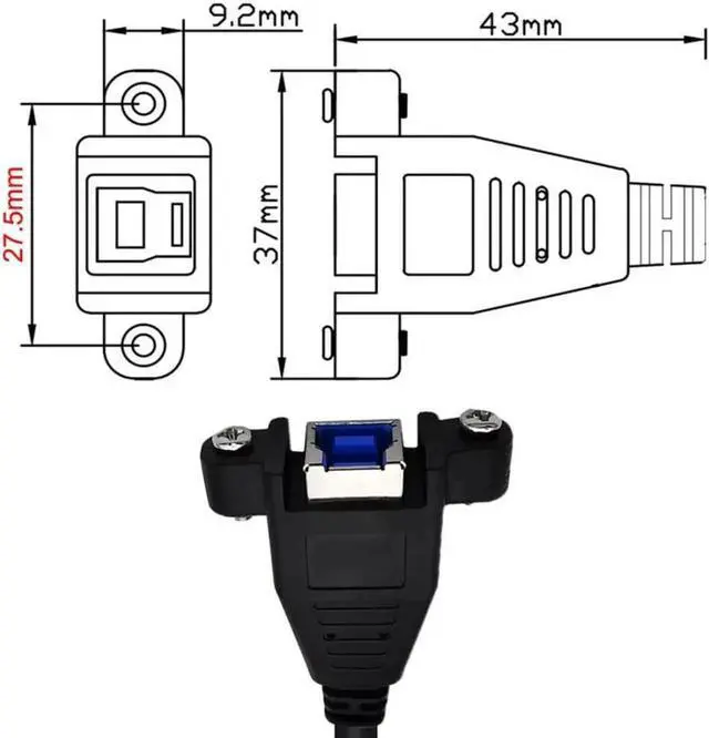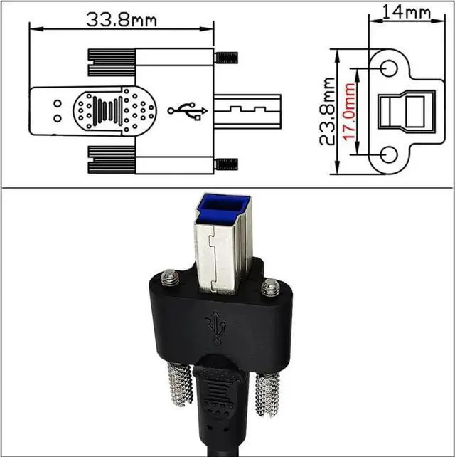 Dual Thumbscrews USB 3.0 Back Panel Mount B Male to Female B Type Extension Cable 0.5m.