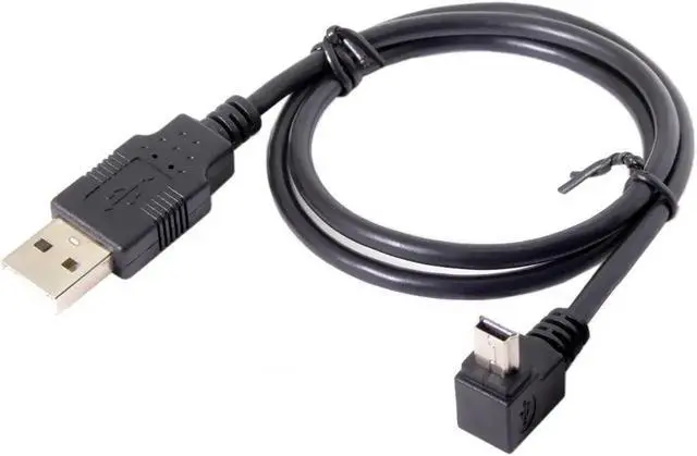 The USB mini B 5pin type male is angled 90 degree type