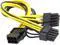 This PCI Express 6 pin to dual 8 pin power adapter cable lets you connect a standard 6-pin PCI Express power connection provided by the computer power supply to er ATI and NVidia video cards that require an 8 pin power connection.