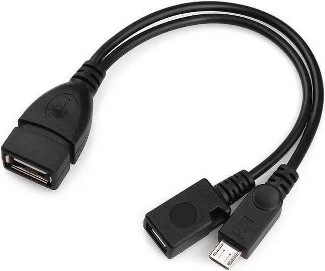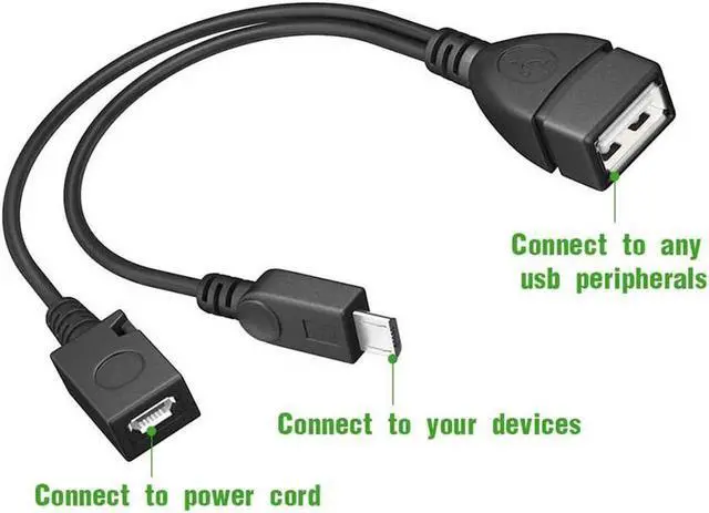 Micro-B female port provide power for USB peripherals ONLY. Make sure your device's battery will not run out as quickly as other ordinary OTG cables.