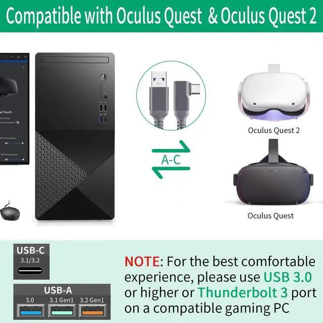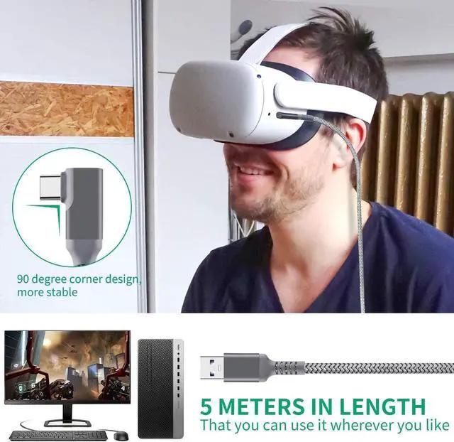 for Oculus quest link cable measures 16.4 ft /5 meters, which offers you ample length for an uninterrupted and untangled experience of Virtual Reality.