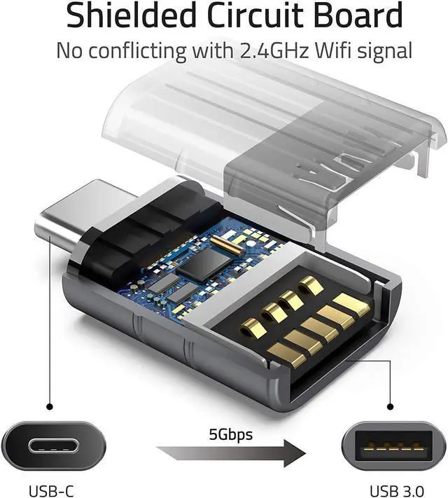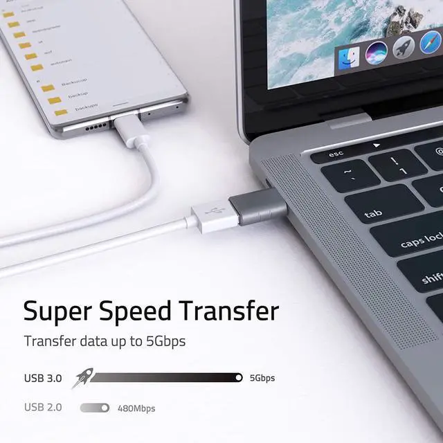 The adapter also supports smartphones' OTG tech.?? User Friendly & USB 3.0 Speed?? Plug and work. Plug the USB C end of the adapter into a USB-C port, and then connect your flash drive or other standard USB-A devices. Also, you can sync or charge your phone with this USB C to USB adapter. Data transfer speed is at the standard of USB 3.0 5Gb/s.?? 2 in 1?? Our market research shows some customers are likely to purchase another USB to USB C adapter after buying one, One for home, the other for workplace.