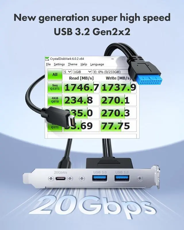 ConvenienceEasy installation and huge expansion for your PC casing. Quickly adds ports through available Type-E and USB 3.0 slot on motherboard for connecting a variety of external USB devices. Fully plug and play and no driver required (Make sure that your motherboard have both headers before buying, some old motherboards do not have 20-pin USB 3.2 Key-A Type-E header and would suggest to install with an USB Front Panel Adapter which converts USB 3.0 header into a USB 3.2 Type-E Key-A 20-Pin connector or a Type-E PCIe Card which converts PCIe slot into a USB 3.2 Type-E connector)