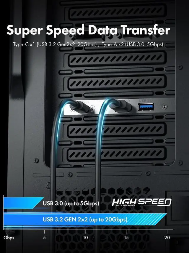 20Gbps High SpeedConstructed with extremely high speed wires that supports USB-C USB 3.2 Gen 2x2 20Gbps / USB 3.0 Type-A 5Gbps, also backward-compatible with USB 2.0 (The Type-c standard cable is inherently able to operate at both USB Type-C Gen 2 10Gbps and Gen 2x2 20Gbps speeds. The 20Gbps specialized port is required on the device to meet the full 20Gbps transfer speed)