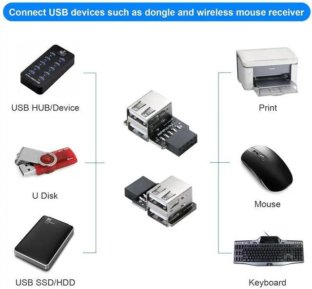 Right type 2-port USB 2.0 to 9-pin*1