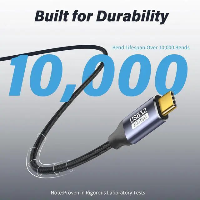 USB C to C cable supports fast charging and up to 10Gbps date transfer. Gold-Plated connectors make the cable more stable and durable.