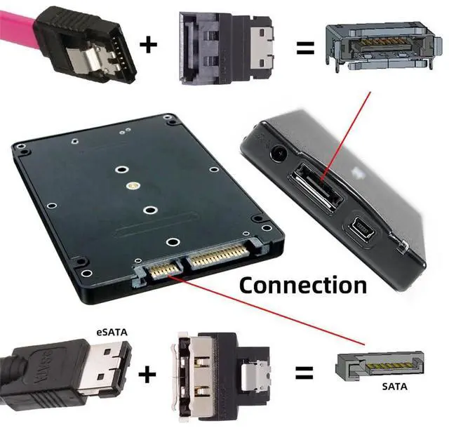 ESATA to SATA one end is ESATA external connector and the other end is SATA connector, which can be connected to ESATA and SATA cables used and for extension.